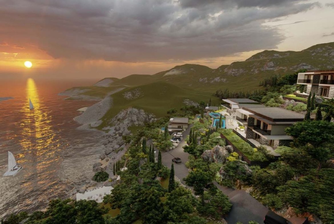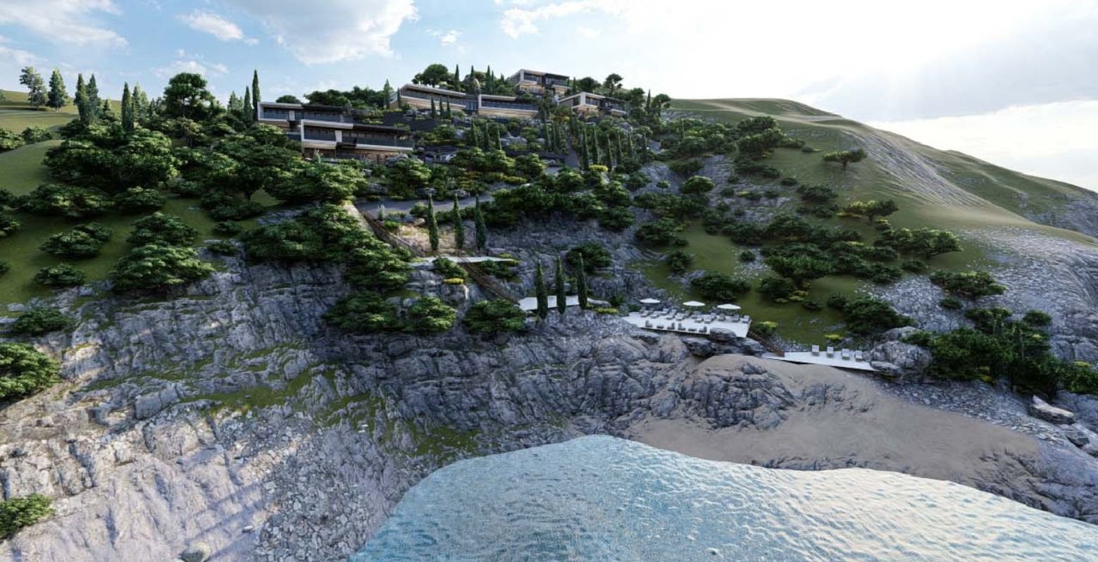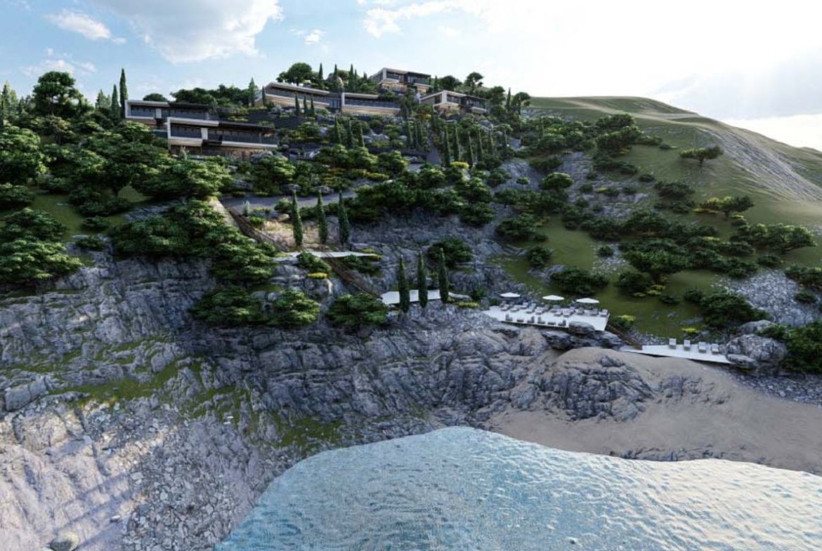 Ekskluzivan plac 5000m2 sa projektom za vile i hotel na obali mora – Zagora, Kotor