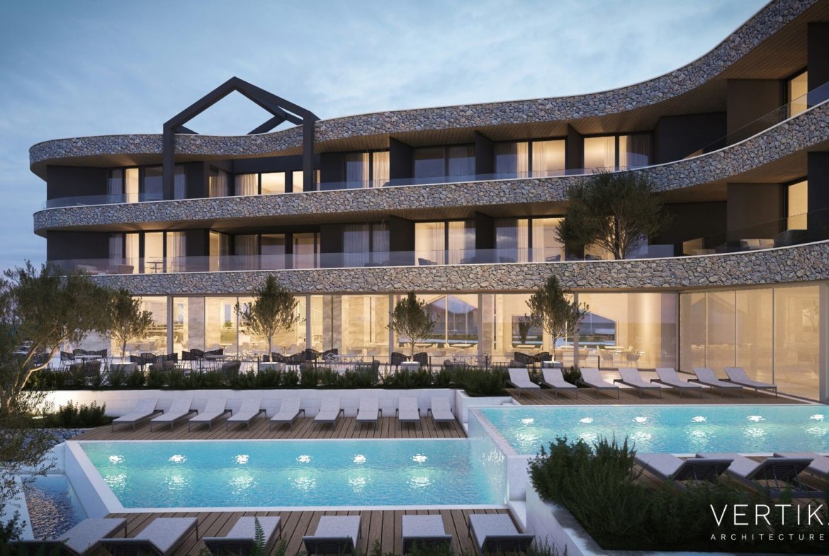 Na prodaju je ekskluzivno zemljište sa gotovim projektom hotela kategorije 5 zvezdica, smešteno na samoj obali mora na poluostrvu Luštica, u naselju Krašići, opština Tivat, u srcu Bokokotorskog zaliva . Lokacija je udaljena svega 10 minuta vožnje od aerodroma Tivat i predstavlja poslednju parcelu na prvoj liniji mora na kojoj je još uvek moguća izgradnja hotela sa 5 zvezdica.