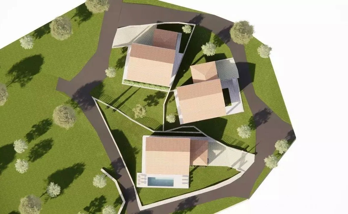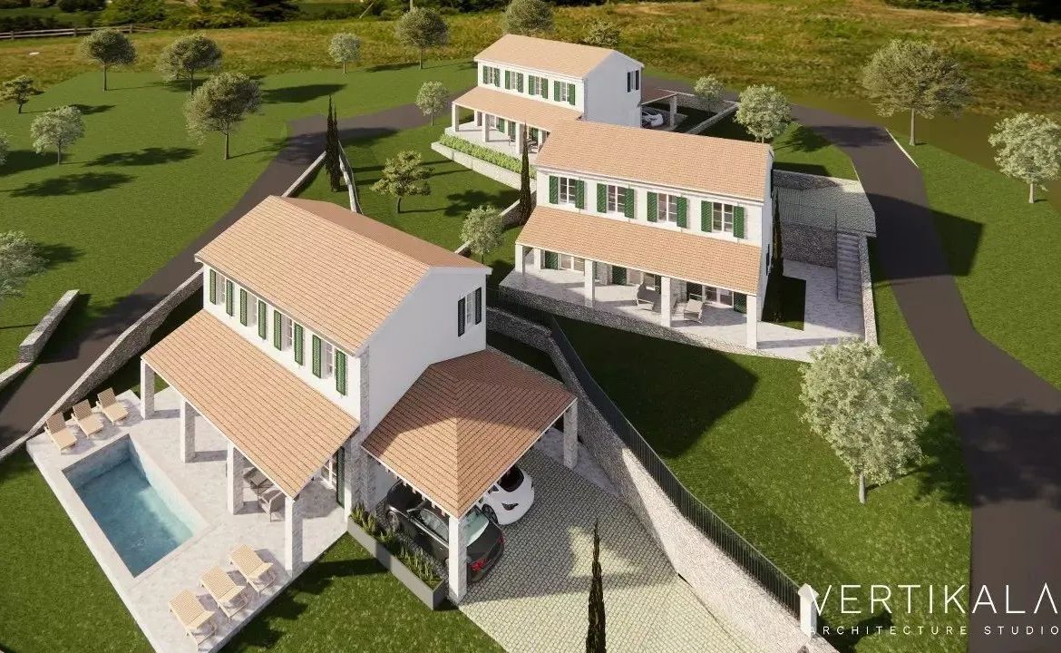 Tri građevinske parcele 1.538 m² sa delimičnim pogledom na more i gotovim projektom vile, blizu plaža i Luštica Bay resorta – Mrkovi, Herceg Novi