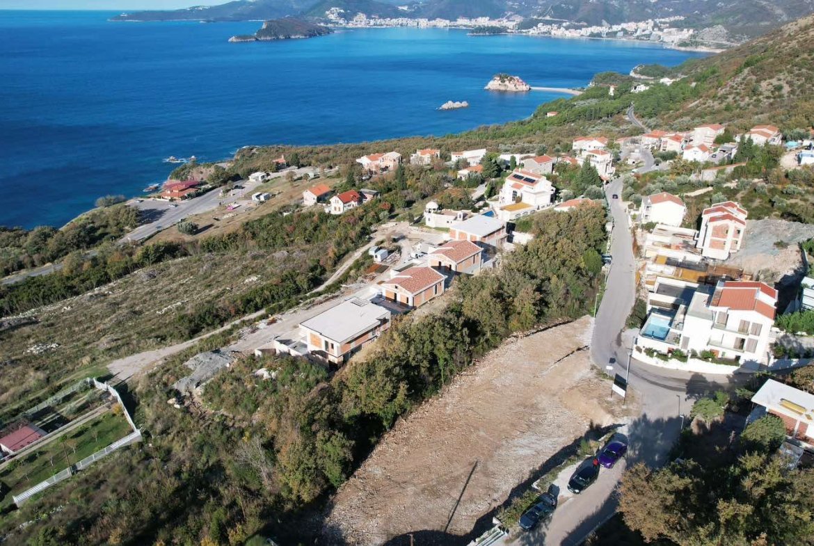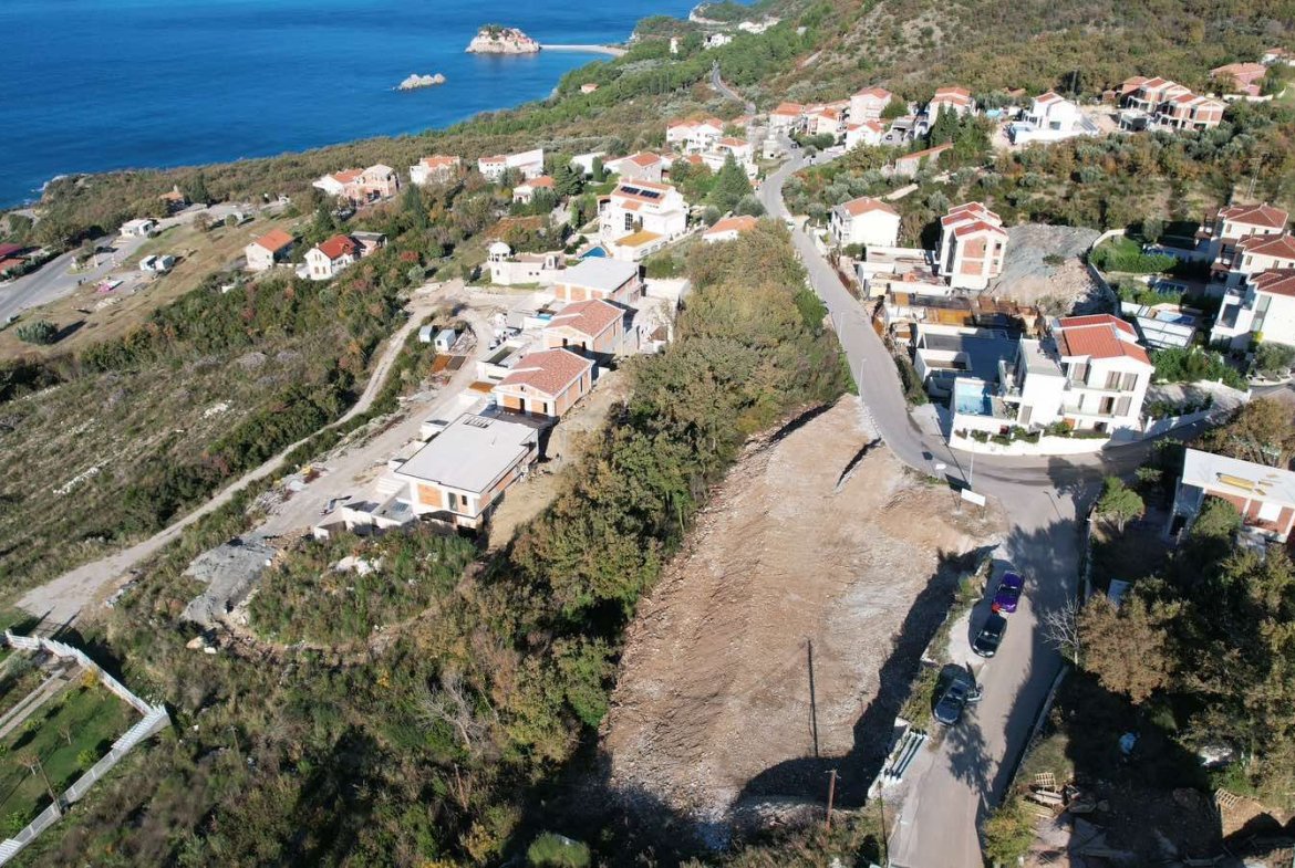 Urbanizovan plac 1.320 m² sa pogledom na more za gradnju 3 vile, Blizikuće, Budva