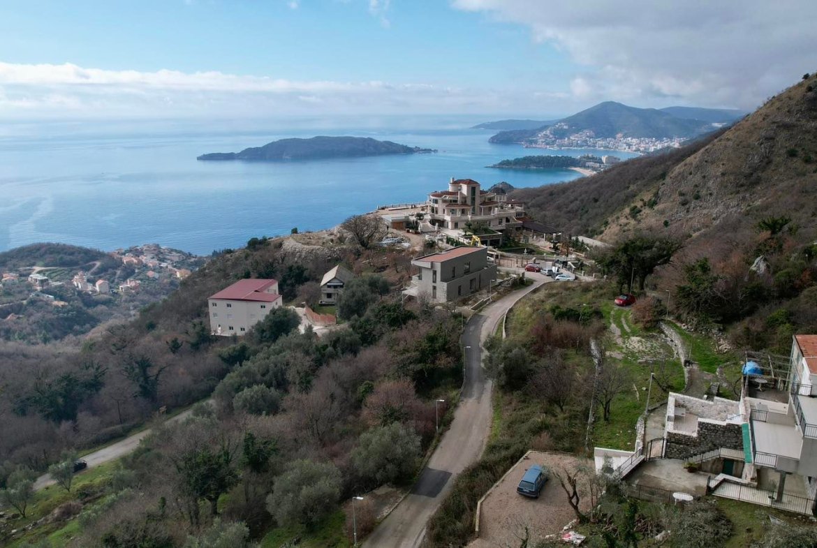 Urbanizovan plac 1400m2 sa pogledom na more-Kuljace,Budva (Zajednicka gradnja 28%)