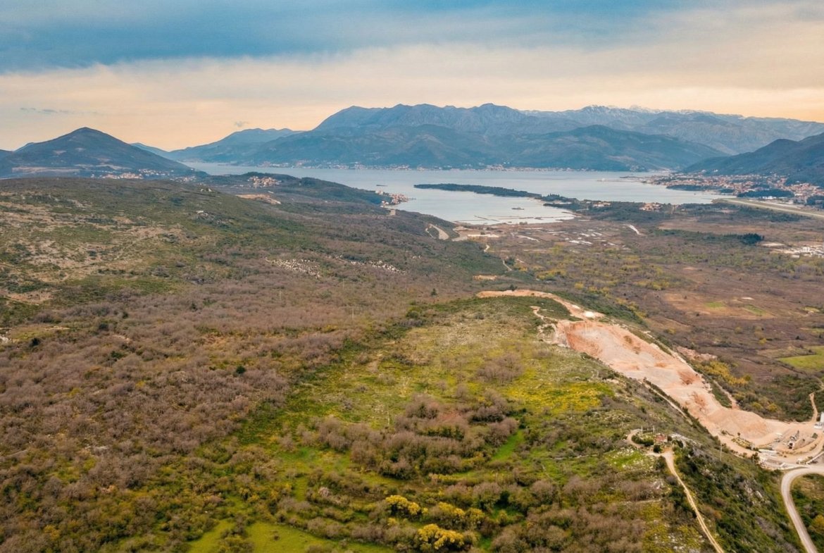 Urbanizovano zemljište 4.254m² sa nezagradivim pogledom na more – Lješevići, Grbalj (zajednička gradnja)